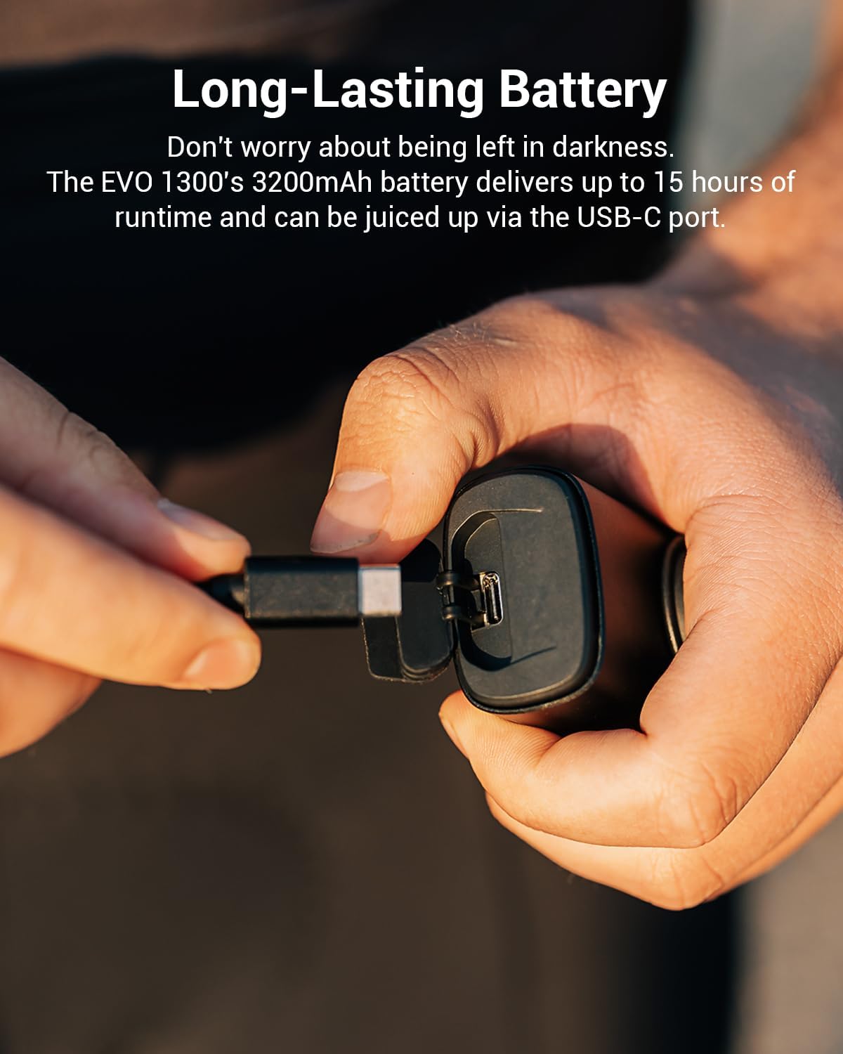- 【Super Bright Rechargeable Bikelight】Magicshine EVO 1300 is a bike headlight with a max output of 1300 lumens and equipped with a fast-charging USB-C port, which supports large current charging, effectively reducing charging time, you can get back on the road quickly.