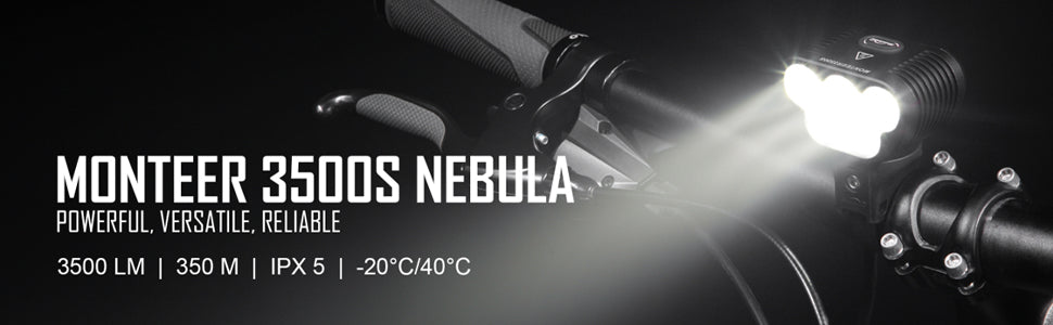 - 【IPX5 Water Resistent and Handlebar Mount(Compatible with Garmin) 】 The Monteer 3500S is weatherproof up to IPX5, sealed light body is able to withstand heavy downpours and snow. Garmin compatible handlebar mount supports bar sizes from 25.4mm to 35mm and certain types of Aero bars. Fully compatible with Magicshine MJ-6272 and TTA out front mounts.